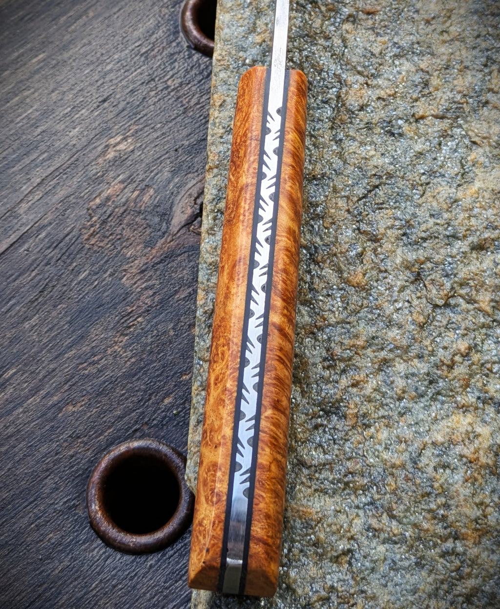Manche : Loupe de tilleul sur intercalaire G10 noir