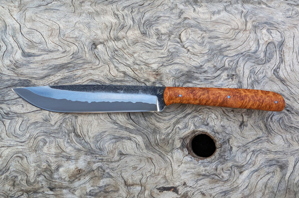 Lame Drop Point Généreuse : Offre un équilibre parfait entre esthétique raffinée et fonctionnalité optimale. Cette forme de lame garantit une polyvalence et une efficacité remarquables pour la découpe de divers mets.