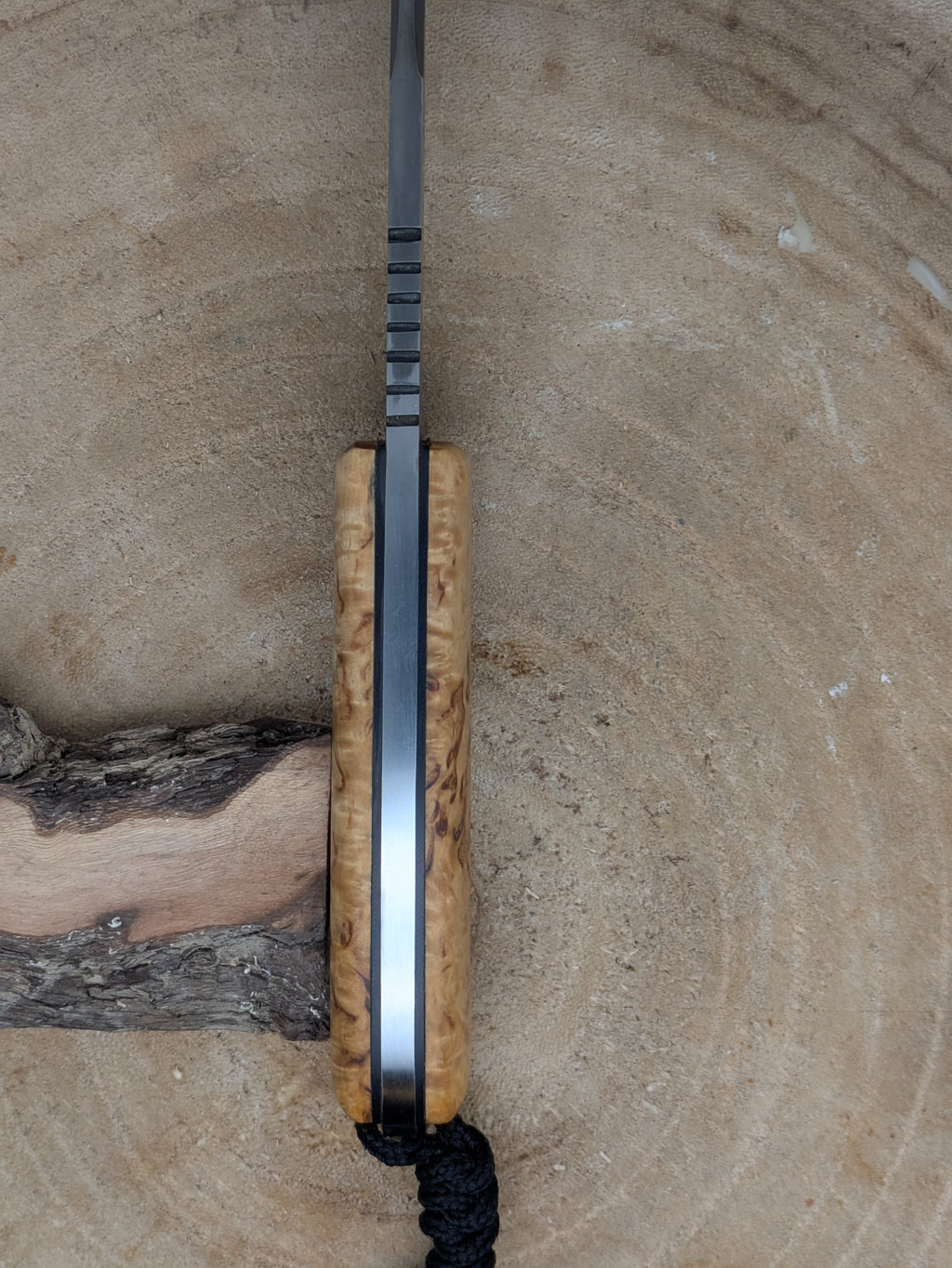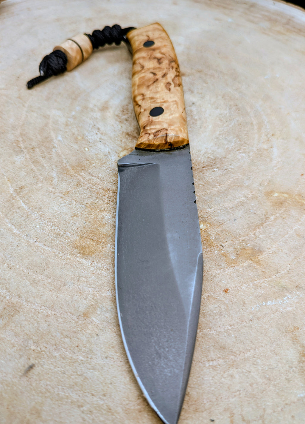 Tranchant longue durée : L'acier D2, riche en carbone et chrome, conserve son fil bien plus longtemps que les aciers classiques, idéal pour les longues expéditions.