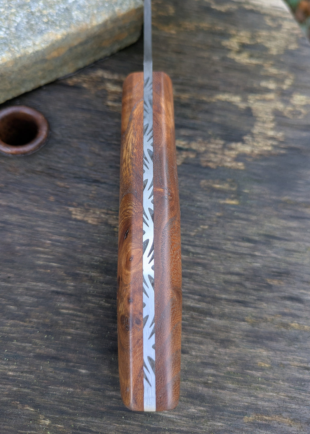 Le Takefu Office est une réinterprétation moderne du couteau d’office, inspirée par l’élégance et la précision des lames japonaises. Fabriqué avec soin, il allie esthétique, confort et performance, idéal pour les amateurs de coutellerie haut de gamme.