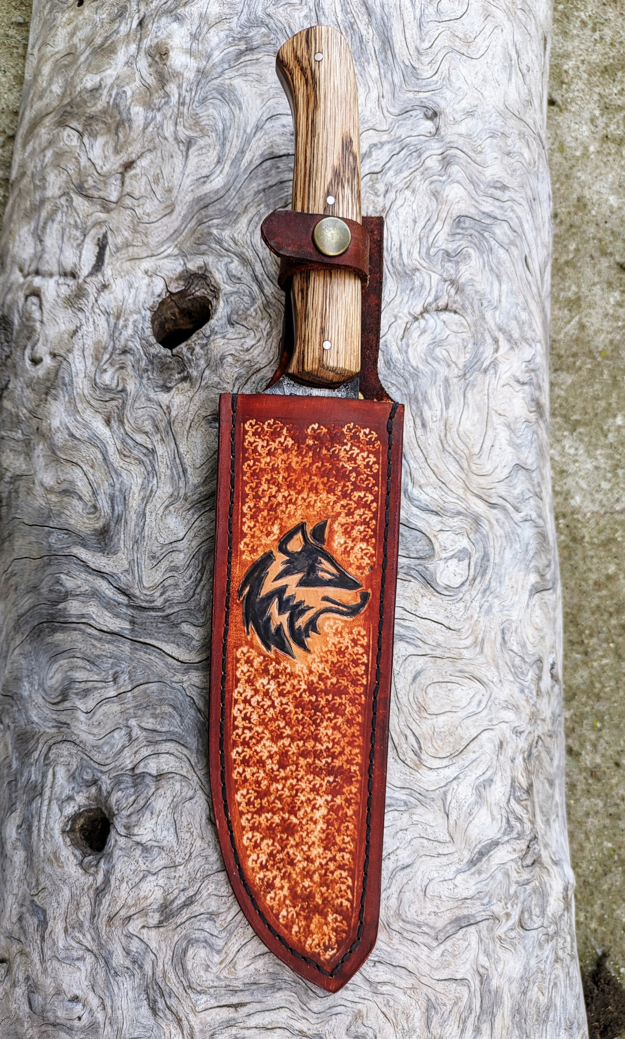 Ce couteau de camp est conçu pour les aventuriers et amateurs de plein air à la recherche d’un outil fiable et esthétique. Sa lame en acier carbone de haute qualité garantit une performance exceptionnelle, tandis que son manche en bois de merisier offre une prise en main naturelle et ergonomique. L’étui en cuir, orné d’un repoussage artisanal, complète l’ensemble avec élégance.