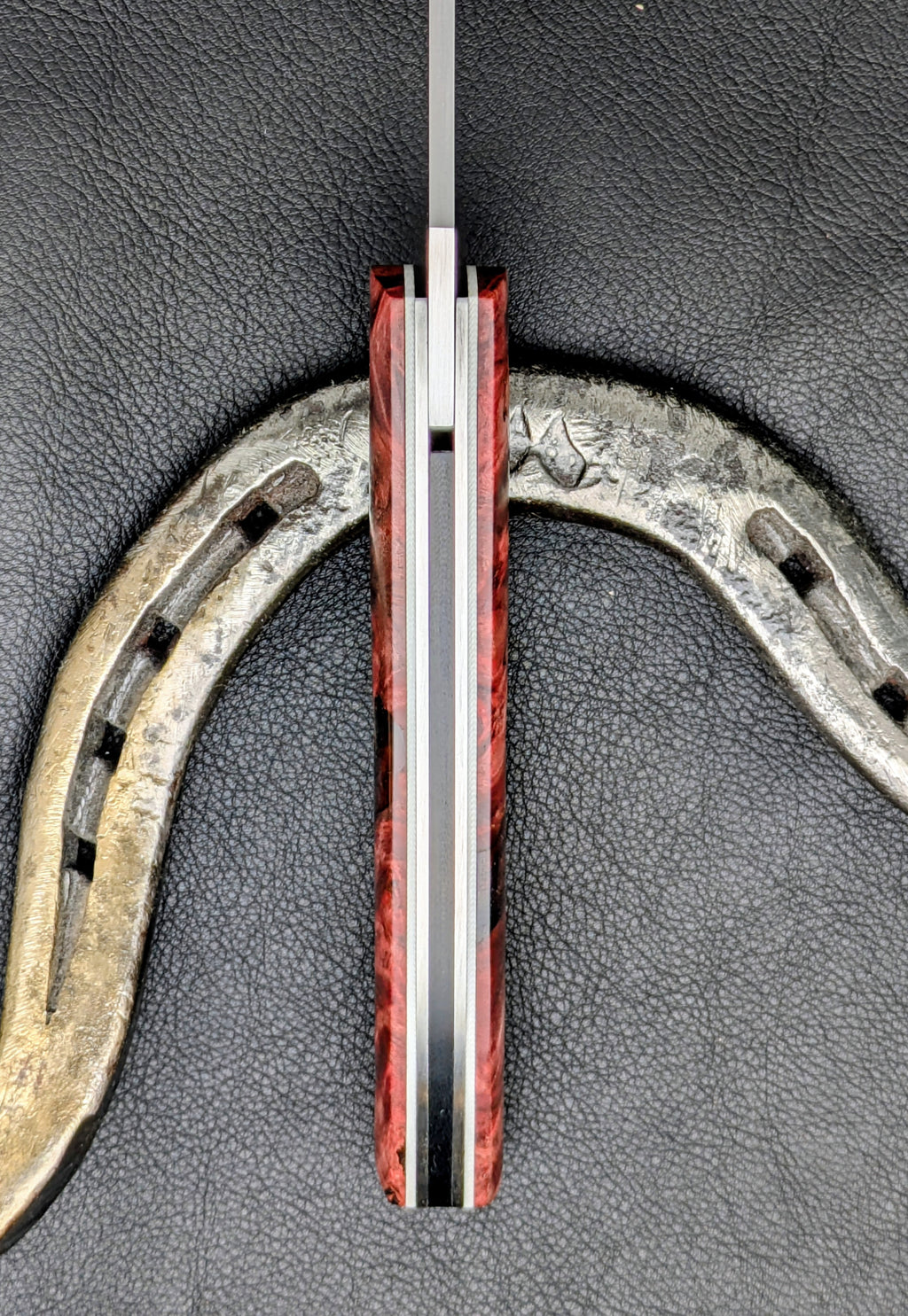 Manche : bouleau madré stabilisé orange/ jaune / noir et vis de pivot en titane